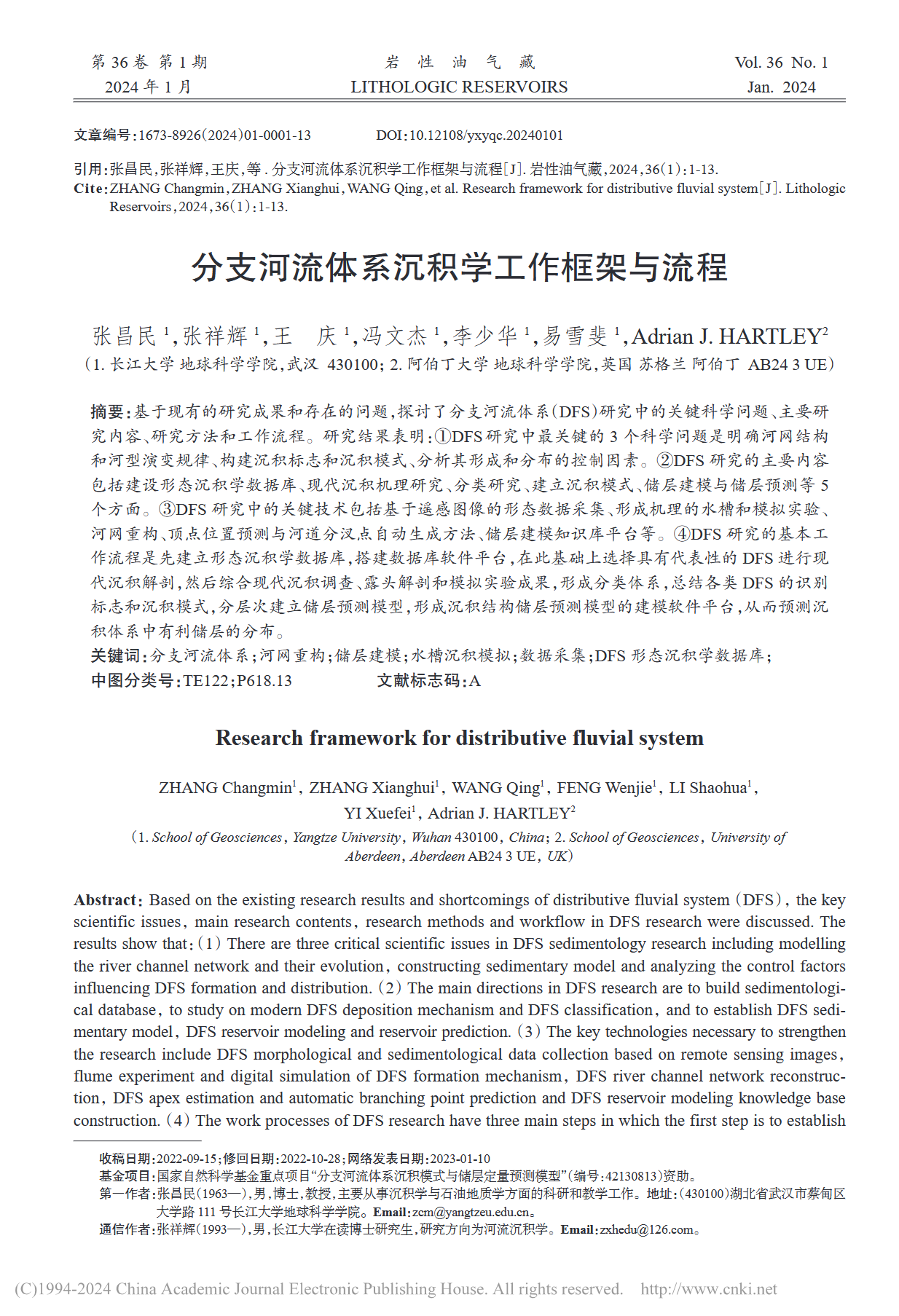 英国365集团公司官网张昌民教授团队在期刊《岩性油气藏》上发表题为“分支河流体系沉积学工作框架与流程”的研究论文。英国365集团公司官网为论文第一署名单位,本项研究得到国家自然科学基金重点项目、湖北省自然科学基金项目共同资助。