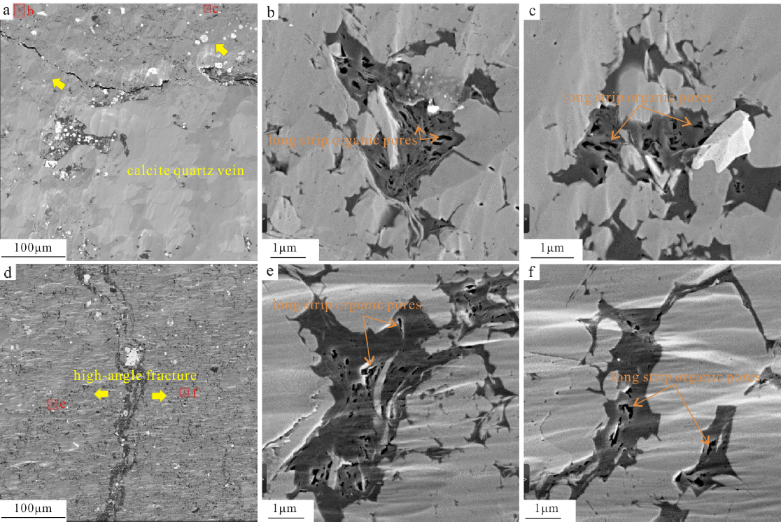 图1 脉体和高角度缝周围的扫描电镜图像