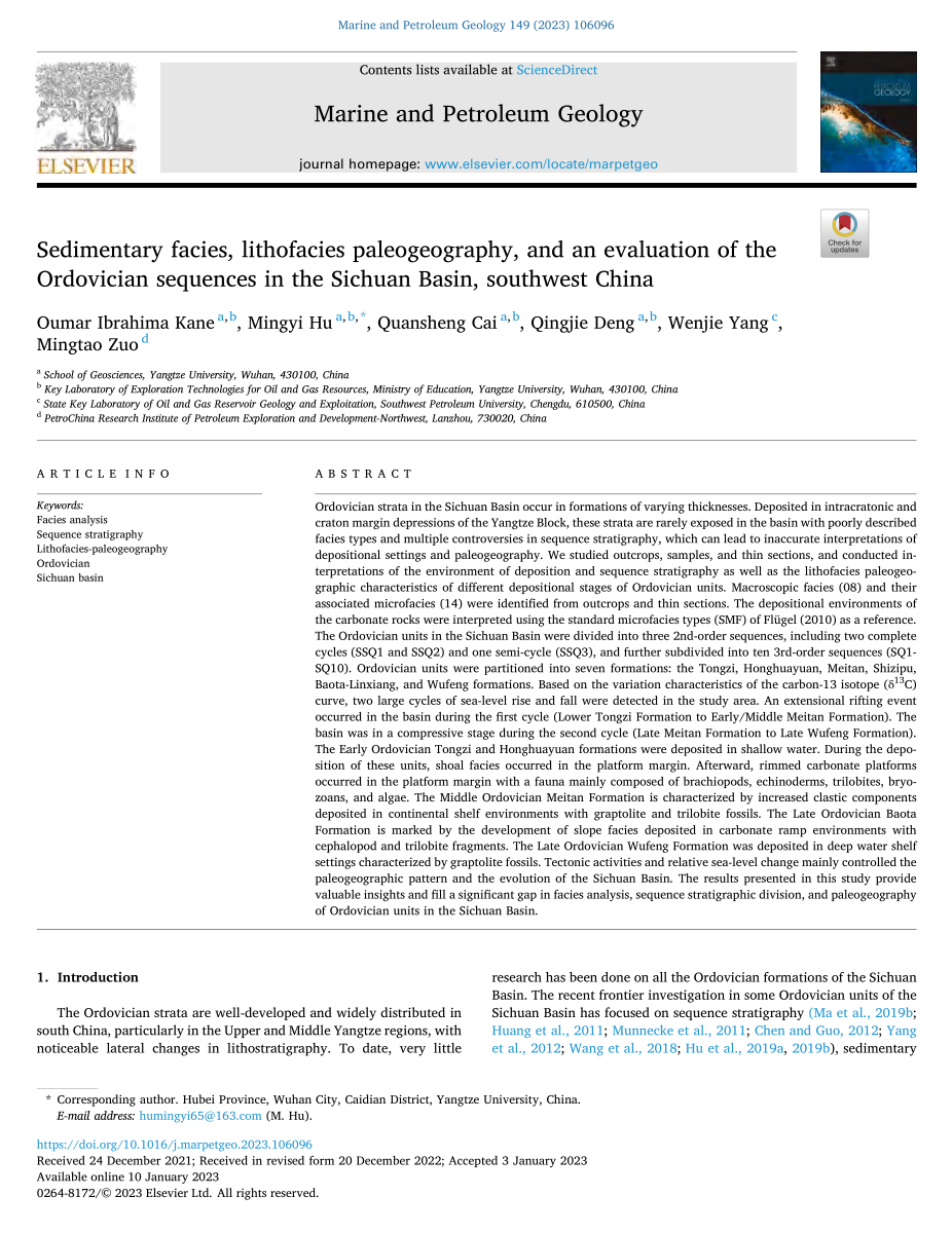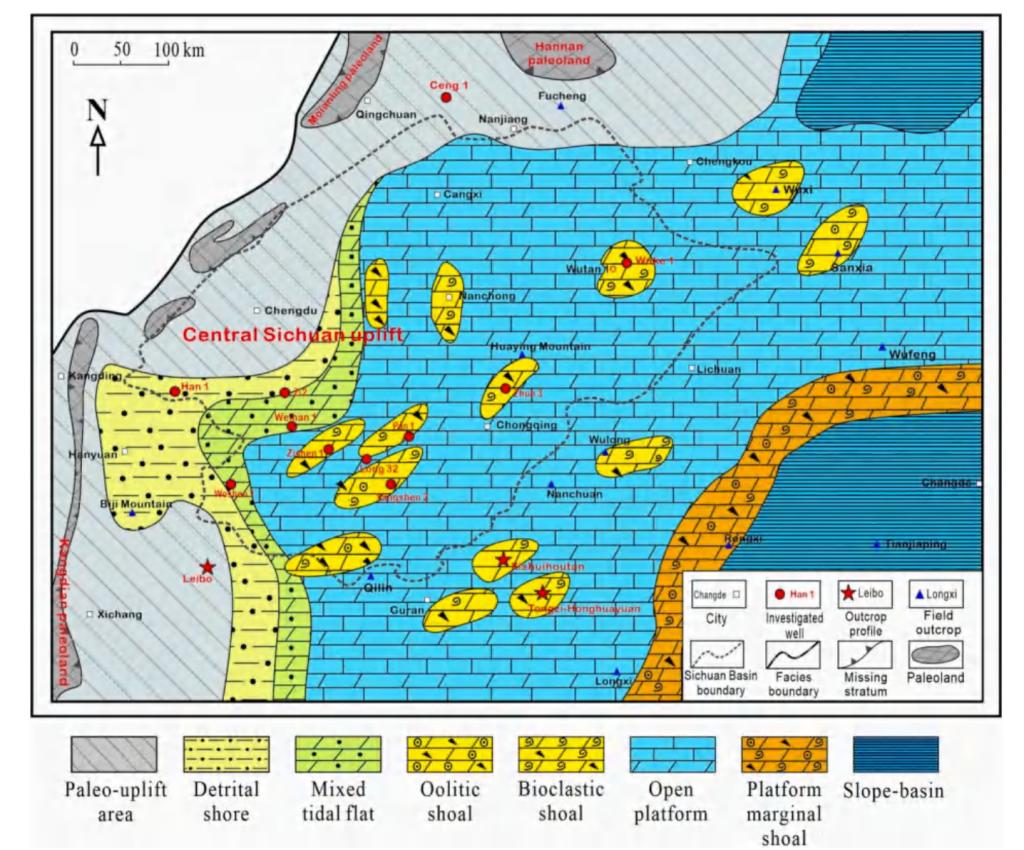 地科公司胡明毅教授团队在石油地质领域主流期刊《Marine and Petroleum Geology》发表了题为“Sedimentary facies, lithofacies paleogeography, and an evaluation of theOrdovician sequences in the Sichuan Basin, southwest China”的研究论文。论文基于露头、岩心、薄片观察,结合碳氧同位素等测试分析对中国西南部地区四川盆地奥陶系层序地层、沉积体系和岩相古地理开展了研究,将四川盆地奥陶系划分为3个二级层序、10个三级层序(图1),系统编制了该区奥陶系岩相古地理图(图1),建立了该区奥陶系沉积演化模式,认为该区早奥陶世发育镶边台地、晚奥陶世发育缓坡台地沉积。