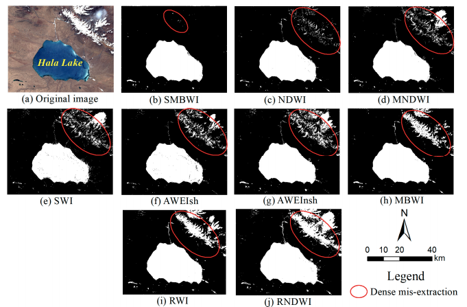 图2.青藏高原哈拉湖试验区水体提取结果