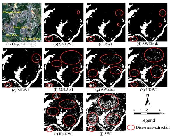 图1.江西上饶东湖试验区水体提取结果