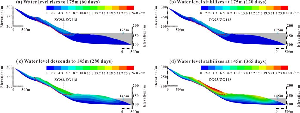 本构模型岩土数值分析的重要内容,对于边坡变形预测和稳定性的准确评估至关重要。然而,由于复杂的边界条件和本构模型,在数值模型中计算边坡稳定性具有挑战性,尤其是对于边坡的概率和水力耦合模拟分析。在本文中,我们建立基于矢量和法的边坡稳定性分析框架,该框架采用了临界状态下的亚塑性本构模型。通过临界滑移面分析和安全系数评估,初步验证了稳定性结果的合理性。随后,我们建立了强度参数的空间变异性模型和水力耦合模型,研究了边坡稳定性和变形的概率特征。最后,以三峡库区白水河滑坡为例,在库水位和降雨条件下进行了水力耦合模拟。分析了滑坡的时变稳定性和变形特征,并比较了Mohr-Coulomb模的结果。