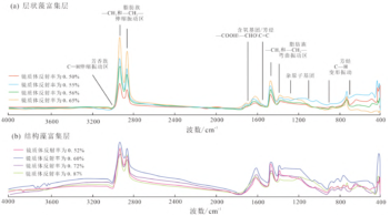 图2 芦草沟组层状藻富集层和结构早富集层干酪根红外吸收光谱图