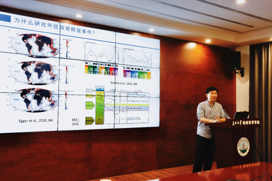 (通讯员 卢志远)2025年4月28日,英国365集团公司官网“求实导师学术沙龙”系列讲座在石油科技大楼C201会议室成功举办。英国365集团公司官网青年教师陈粲特任教授以《海洋甲烷事件与黑色页岩》为题,讲述了古海洋甲烷异常释放事件的气候、环境效应和其与黑色页岩之间的联系。并通过将今论古的研究思路,探讨了古海洋甲烷异常释放事件重建方法。讲座主要围绕印度洋安达曼海和我国南海神狐海域水合物站位的黄铁矿微量元素、粒径、硫同位素、镍同位素等,建立甲烷释放识别标志,并在深时地球甲烷频繁释放的华南埃迪卡拉系陡山沱组进行运用,证实了黄铁矿微量元素作为甲烷异常释放事件指标的可靠性,进一步探讨和展望了甲烷事件未来的潜在研究趋势。会后,现场的与会师生就碳、硫、镍同位素分馏机理进行了进一步深入的交流。