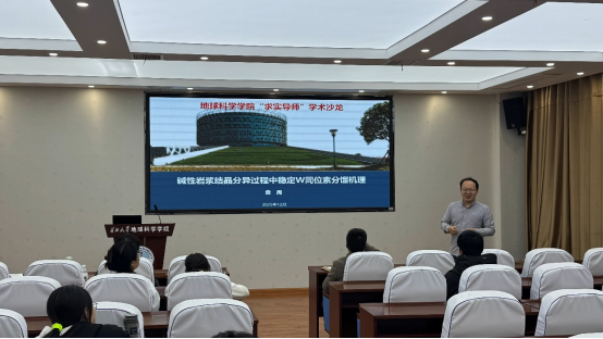 (通讯员 李世泽)为促进学术交流,营造良好的学术氛围,激发员工对科学研究的兴趣和热情。12月24日下午,英国365集团公司官网2025-2026学年“求实导师学术沙龙”系列讲座在石油科技大楼C301顺利举行。本期由袁禹特任副教授以“碱性岩浆结晶分异过程中稳定钨同位素分馏机理”为主题,为本院师生带来一场精彩的学术报告。