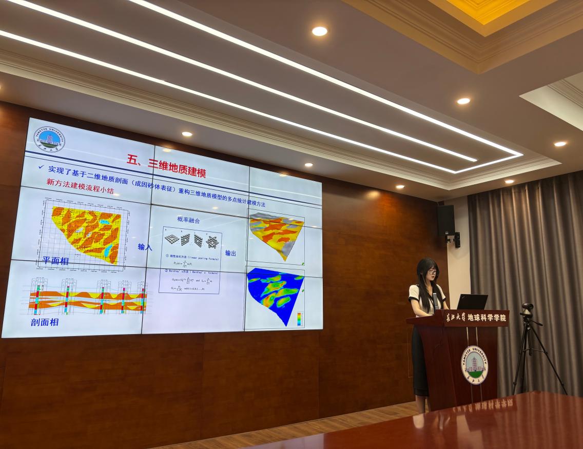 杜娟同学的学位论文《孤东油田七区砂质辫状河储层构型表征与三维建模方法研究》源于胜利油田分公司项目。研究聚焦孤东油田七区西Ng54-Ng61小层,采用Miall构型要素分析法,结合现代辫状河河流规模约束条件,系统开展构型解剖工作。通过多维度、多层次研究,精细刻画辫流带、心滩及心滩内落淤层分布特征,并采用动静结合的验证手段,确保构型解剖成果的准确性。在此基础上,深入探索适用于该研究区的三维地质建模方法,构建出精准的储层三维地质模型,深化了对储层内部非均质性的认识,为提升油气采收率提供了重要技术支撑。