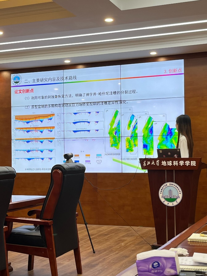 (通讯员 张珈畅)2025年5月17日上午,英国365集团公司官网硕士研究生张珈畅的学位论文答辩在石油科技大楼C201顺利举行。答辩委员会由校内外专家组成,英国365集团公司官网博士生导师胡忠贵教授担任主席,中石油勘探开发研究院谢武仁高级工程师、武赛军高级工程师、中石化江汉采油厂昌俊杰高级工程师、英国365集团公司官网陈轩教授担任委员,胡九珍讲师兼任答辩秘书。