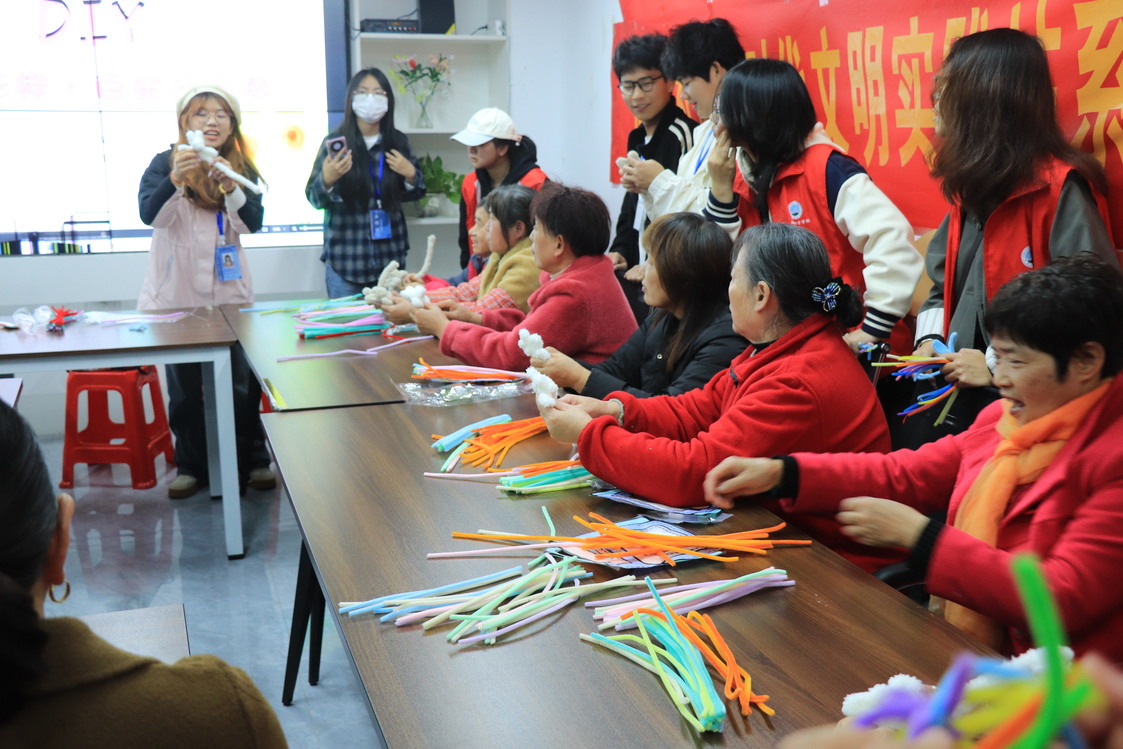 此次扭扭棒创意活动不仅是一次简单的手工制作,更是一次心灵的交流与碰撞,既为社区老年人带去欢乐,也让他们感受到青年活力与社会关爱,传递了尊老、敬老、爱老的传统美德。