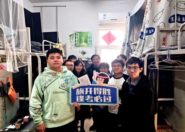 (通讯员 李雨泽 魏靖弢)随着2025年考研初试日期的临近,在紧张备考的冬日,公司考研学子的复习热情却越发激昂。为鼓励和关心公司考研学子,公司领导、21级班主任及学工办全体辅导员于12月17日中午走访2021级“备战”寝室,送去考前关怀,为同学们带来一份特别的温暖。