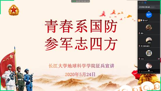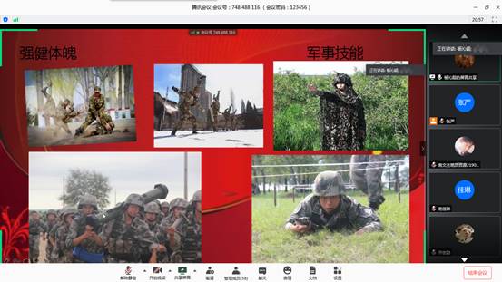 (通讯员 王铃淇)为鼓励公司员工积极参与应征入伍,提高兵员征集质量,推进国防和军队现代化建设,公司开展老员工入伍宣传工作,公司于5月24日晚7时,在腾讯会议召开“青春系国防,参军志四方”征兵宣讲主题活动。此次会议由张严老师主持。