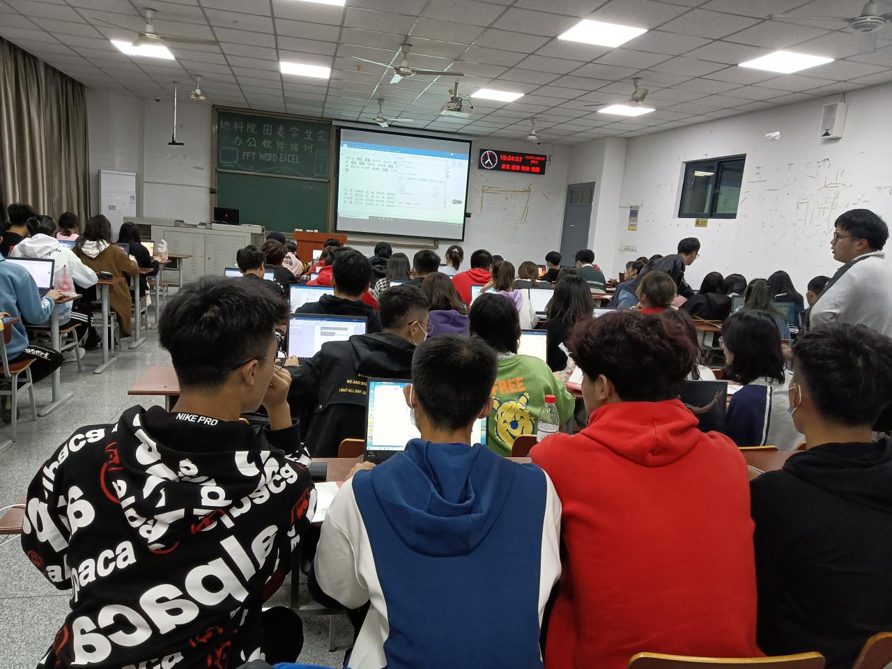 会议伊始,刘威学长就PPT的页面排版、颜色搭配、页面切换和各种动画效果的制作等问题进行讲解,他强调了在PPT的制作过程中,一定要做到图文并茂。紧接着他演示了在Word文档中常用的一些快捷键和网页文字复制、文字纵横显示、Word文档中的表格的制作、页眉页脚以及目录自动生成等基本操作。最后着重讲述了 Excel的常用快捷键、万能填充和提取、数据的筛选以及Excel中常用的函数。