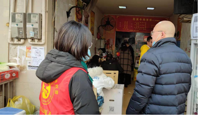 图一 代思佳同学在给商户宣传防疫知识