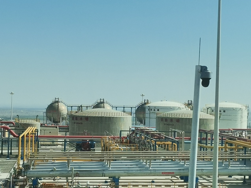 首先,塔里木油田油气开发部迪那处理站副站长关江涛带领大家参观了迪那2凝析气田中央控制室。数字化与自动化的设备让人眼前一亮,仅仅利用电子自动化技术就能实现对于采油气装置的远程控制,使得设备能够保持平稳运行。如有故障发生,工作人员可以在短时间内迅速识别并及时处置。而后,他又带领队员们参观了储存与运输油气的各个工业设备。特别是“液塞捕集器”与“脱水脱烃装置”两种设备,点燃队员们探索油气管道多相流与天然气脱水脱烃研究方向的热情。