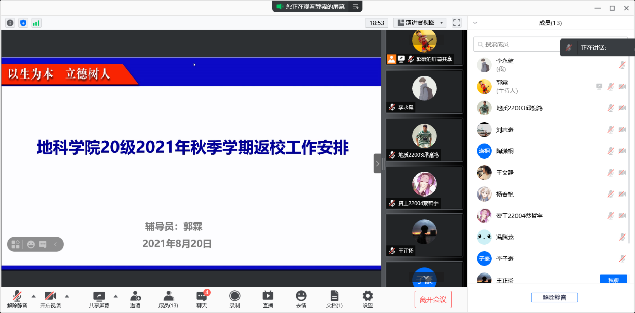 (通讯员 李永健)为确保2021年秋季学期开学返校工作平稳有序开展,公司按照疫情防控要求以及8月15日公司发布的《关于做好2021年秋季学期开学准备工作的通知》,于8月20-22日用腾讯会议的形式在全体员工中召开了“地科公司2021年秋季学期返校工作安排”主题班会。