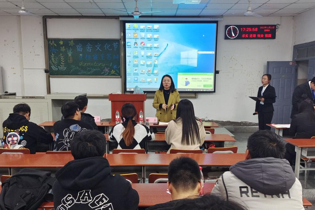经过各个寝室的精彩介绍之后,由郭霖老师进行总结讲话。郭老师说:“在大学中,生活好是第一位的,宿舍建设显得尤为重要,搞好寝室积极向上的氛围,可以延伸到班级、公司,乃至到专业当中,希望所有同学能够共同进步!”