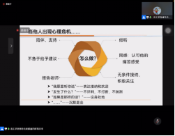 紧接着,油工公司商麟鑫老师以“心理危机”为主题,从心理健康的5种表现出发,详述12种心理危机的类型,明晰校园心理危机的识别方法和干预措施。最后,商老师给出了6种沟通方式,对同学们关怀有心理危机员工具有极强的指导意义。