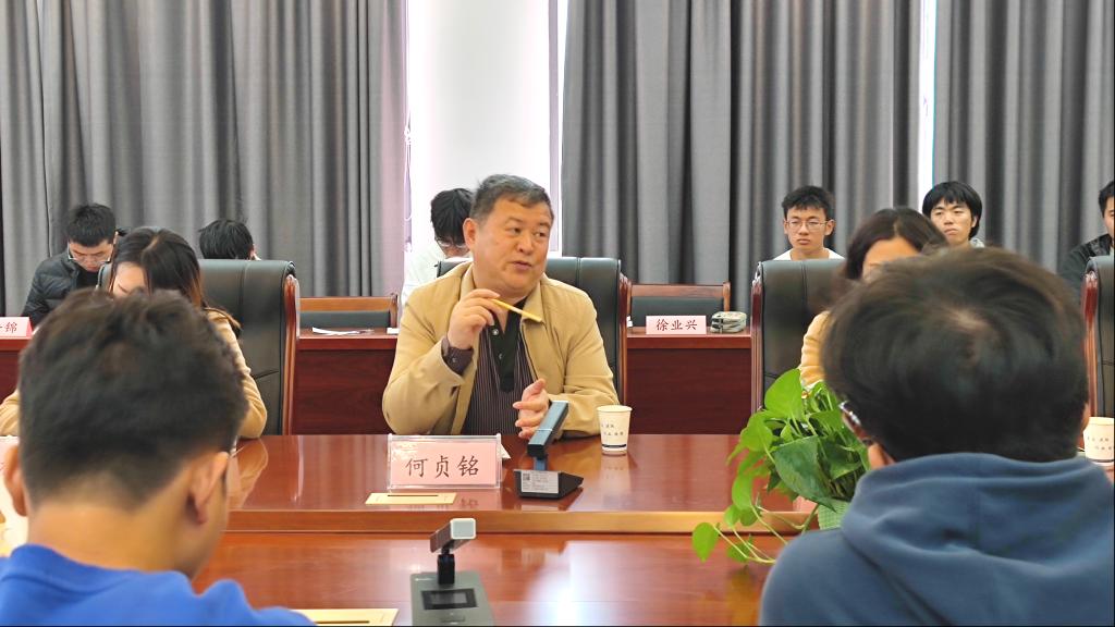 会议接近尾声,郭霖老师对本次座谈会做出总结,并向何贞铭教授表示诚挚的感谢。同学们也由衷地用掌声表达心中的感激。最后,全体参会人员合影留念,会议室中的气氛温馨美好,何贞铭教授和蔼、亲近的笑容也给同学们留下了深刻的印象。