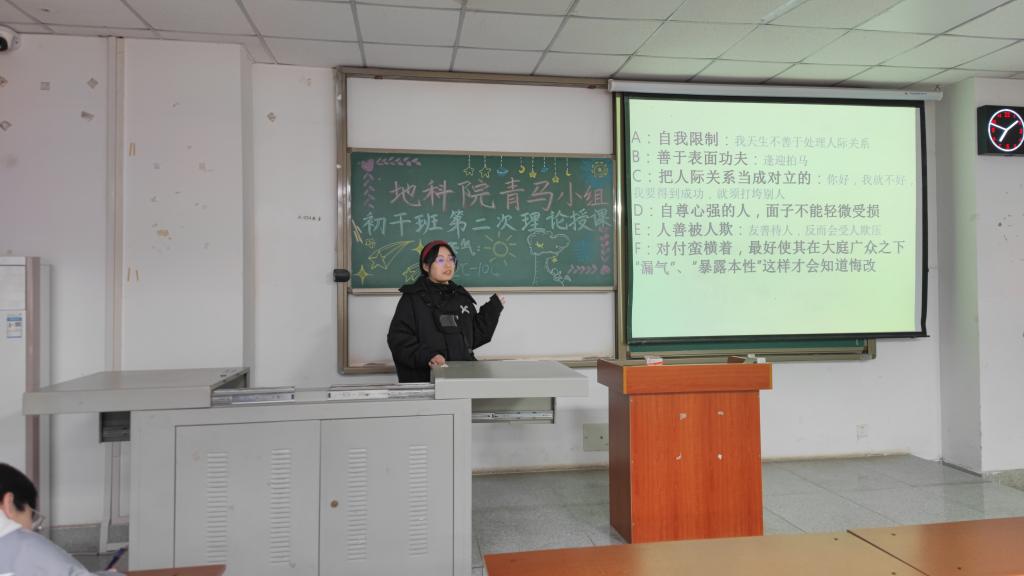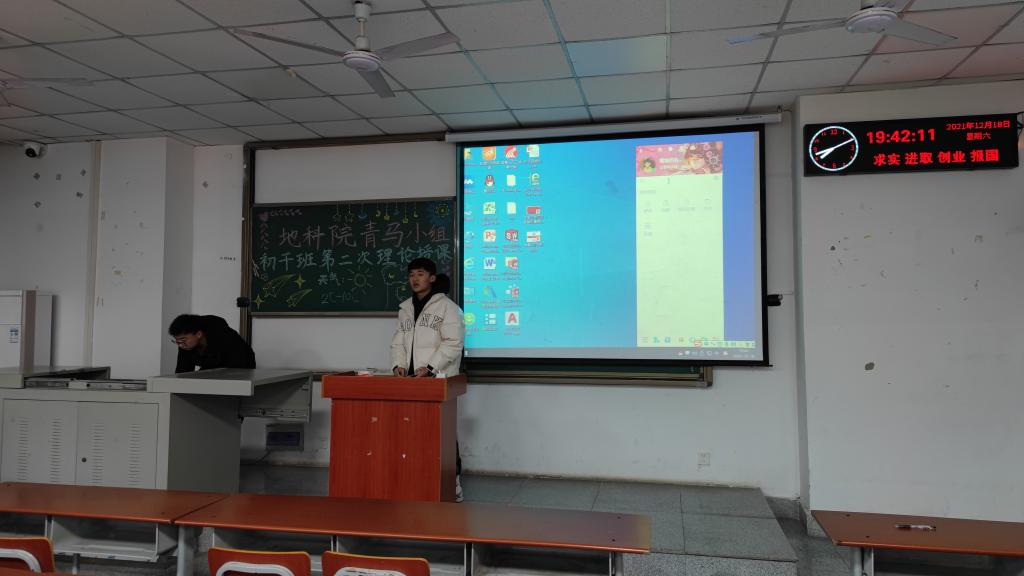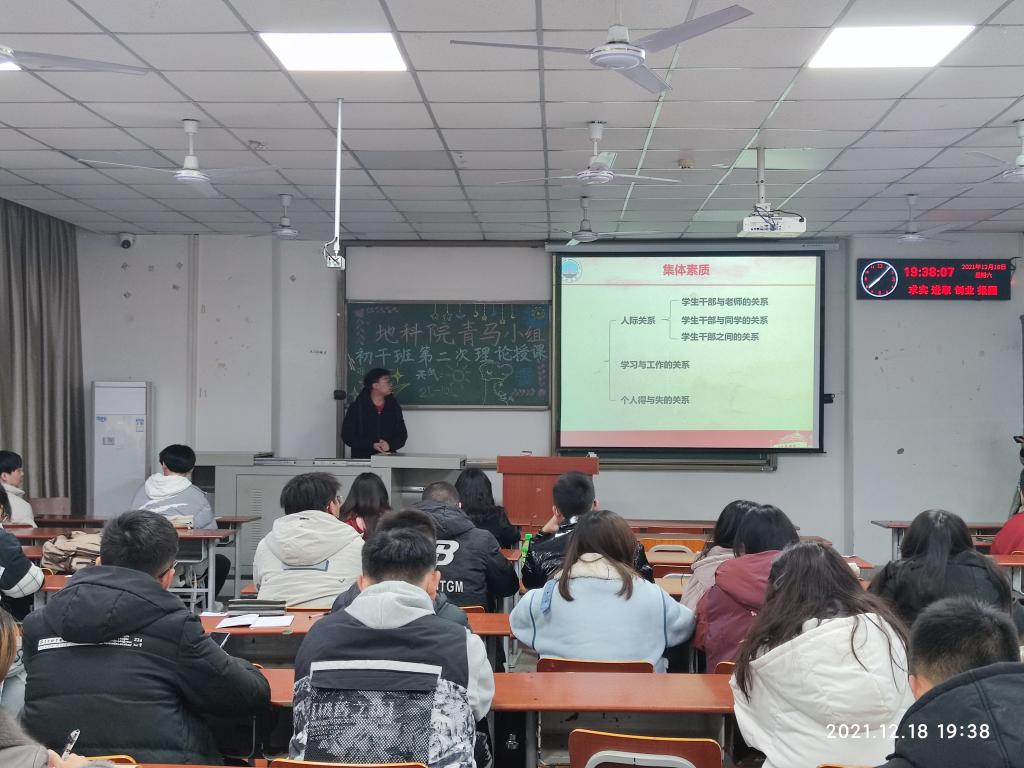 (通讯员:杜子萱 白硕)2021年12月18日19时,地科院青马小组及员工干部初级培训班在A104教室开展第二次理论授课。本次活动由班导陈星兆、高婧,地科团委员工会副主席王高寒、李勇,小组长李银凤、黄汉臣及青马小组、员工干部全体成员参加。