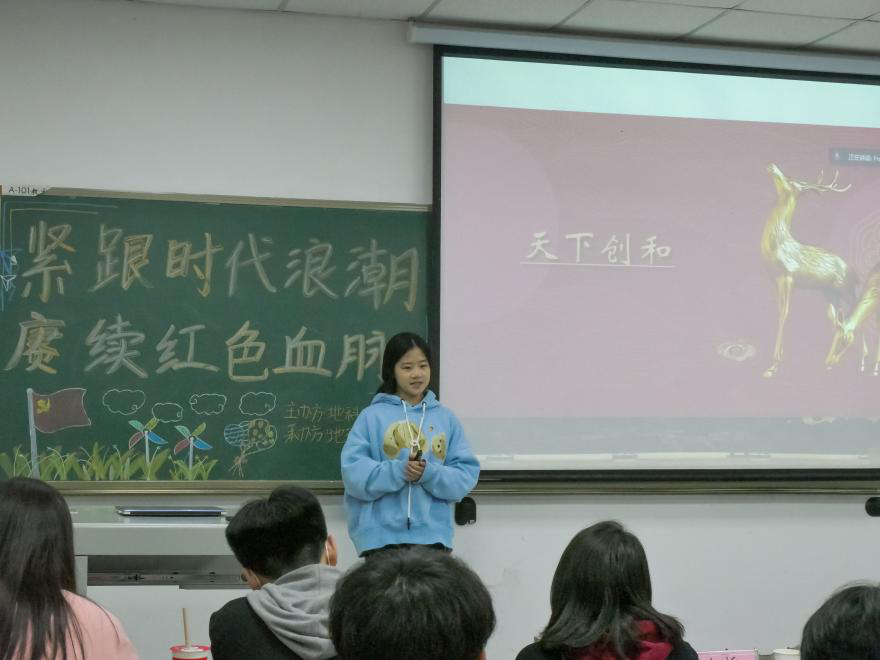 汇报中,同学们介绍了许多可歌可泣的烈士和不朽的精神。白硕讲述了在走访安东保卫战纪念馆以及研学十九届六中全会得到精神升华的一个过程;谭静雯则传递了“牢记使命、居安思危”的使命感;杜子萱又带领大家深入理解“以史为鉴,可知兴替”;赵威紧接着把同学们的目光带回到1998年抗洪事件,让大家想到如今的美好生活的来之不易;吕品扬也引导着大家思考苏联苏维埃政权失败和中国特色社会主义成功的原因与启发;李念珊线上介绍了昆明陆军讲武堂、胜利堂、国立西南联合大学一二一纪念堂,让同学们真实感受到军队创强的重要性;胡景怡最后以一组组美观的照片带同学们游览石家庄解放纪念馆,烈士陵园等红色基地,以精准的措辞讲述了河北的红色文化。