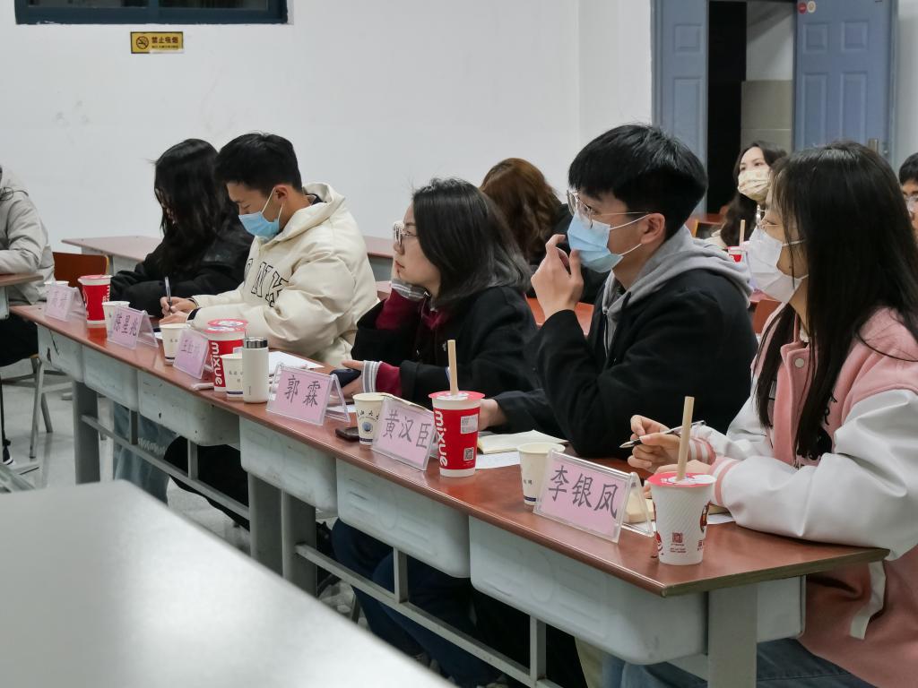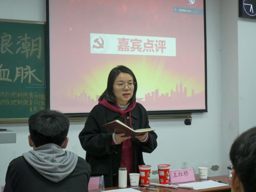活动依旧以“紧跟时代浪潮,赓续红色血脉”为主题,由“青岚”二组组员答辩,“青岚”一组组员筹办工作,活动邀请到邀请地科院团委书记郭霖老师和21级辅导员王红桥老师为评委。