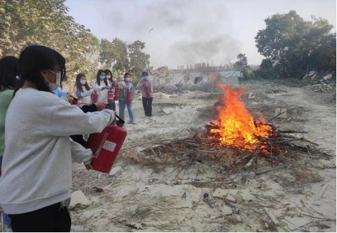 活动伊始,保卫处消防安全管理员宁明老师向同学们详细讲授有关消防的常识性知识、灭火器的种类与性质并强调安全用电用火的重要性。随后,在保卫人员的陪同保护下,每位同学手持灭火器,逐一走近指定灭火区进行灭火实操。