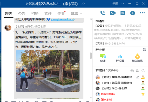 (通讯员黄瑱 姚佳)为加强家校联系,打造协同育人体系,公司于11月20日晚7时30分通过QQ群,召开线上2022级本科新生家长会。公司党委副书记任倩、年级辅导员黄瑱、姚佳及300余名新生家长参会。