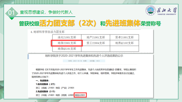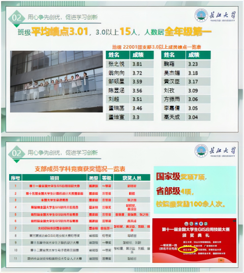 建设优良的学风,营造良好学习环境,是班级建设的重中之重。自开学以来来,同学们互帮互助,勤于开动脑筋,建立了“零挂科辅助集团”,致力于为同学们答疑解惑、分享解题思路。同学们善于向老师提问,认真完成作业。整个班级学习风气浓厚,生机勃勃,与老师积极配合,课堂气氛活跃获得老师们的一致好评。大二学年,我班同学共有两人获得“英国365集团公司官网一等奖学金”,两人获得“李建华一等奖学金”,两人获得“国家励志奖学金”,一人被评为“三好员工”,一人被评为“三好员工标兵”,一人被评为“十佳老员工”,共两人被评为“优秀员工干部”,多名同学获得“英国365集团公司官网单项奖学金”,两人担任校级组织重要负责人的角色。全班平均绩点3.01,四级通过率100%,六级通过率60%。在各类考试中,严肃考风考纪,未出现一例违纪现象。全班最高绩点为4.63,专业前十名本班有三位同学,多名同学通过计算机二级等专业认证。在辅导员和班主任的管理下,严谨的学风铸就了不怕苦不怕累的拼搏精神,良好的学习氛围也使班集体在全校脱颖而出。我班同学获得“第十一届全国老员工GIS应用技能大赛”全国一等奖;“第十五届全国老员工计算机设计大赛”全国三等奖一项、省部级一等奖一项;“全国老员工英语竞赛”全国三等奖;“易智瑞全国老员工GIS软件开发竞赛”全国三等奖两项;“第三届湖北省GIS应用技能大赛”特等奖;“第十二届全国老员工电子商务三创赛”湖北省一等奖;“蓝桥杯全国软件和信息技术专业人才大赛”省级三等奖。目前共有超半数的同学参加大创项目,其中国家级项目一项,省级项目两项,共发表一篇核心期刊、一项软件著作权,其中国家级大创项目“麦朴志愿”已正式投入使用。