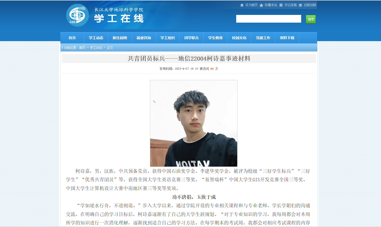 榜样引领齐奋进。为发挥榜样示范引领作用,公司在官网和官微上推出“共青团员标兵”和“校园明星”宣传展示。柯诗嘉刻苦学习三年成绩保持专业第一,徐涛醉心科研发表多篇权威论文,刘亚唯积极为同学们服务,文中冠多次荣获国家级竞赛奖励。大家的榜样事迹鼓舞全院同学牢记梦想,不负韶华。