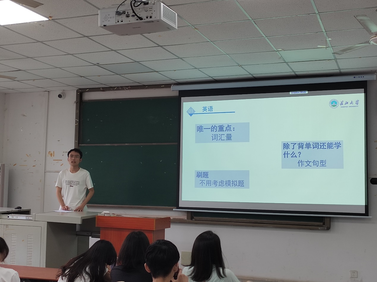 地信(测绘)21902班的李桥和贾俊红两位同学为大家带来不少干货。李桥说“在复习考研英语的过程中,要坚持每天背单词,词汇量的多少是决定考研英语分数高低的最主要因素”,他还分享了自己的调剂经验。贾俊红叮嘱大家在紧张的复习的过程中也别忘了劳逸结合,适当放松也可以达到事半功倍的效果。通过他们的分享,同学们更加明确了考研备战计划和目标,积极备考,朝着理想不断前行。