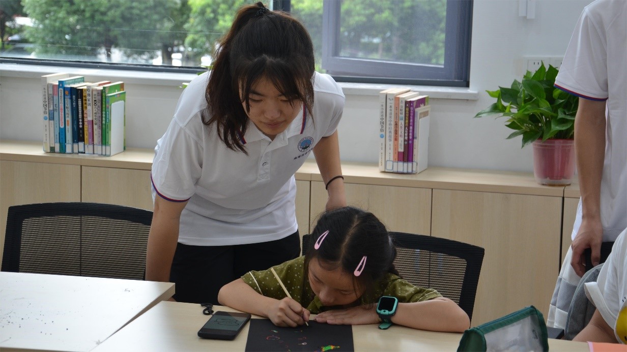折纸、画画、下棋、猜谜语……孩子们在队员们的陪伴下玩得不亦乐乎。孩子们与队员们积极互动,笑声不断,掌声连连,活动室里充满了快乐的氛围。为办好本次活动,公司“后浪”暑期社会实践队进行了精心的组织策划,提前与社区联络,了解孩子们年龄特点,准备了大量健康益智活动及游戏,让每个孩子都能发展兴趣,发挥特长。