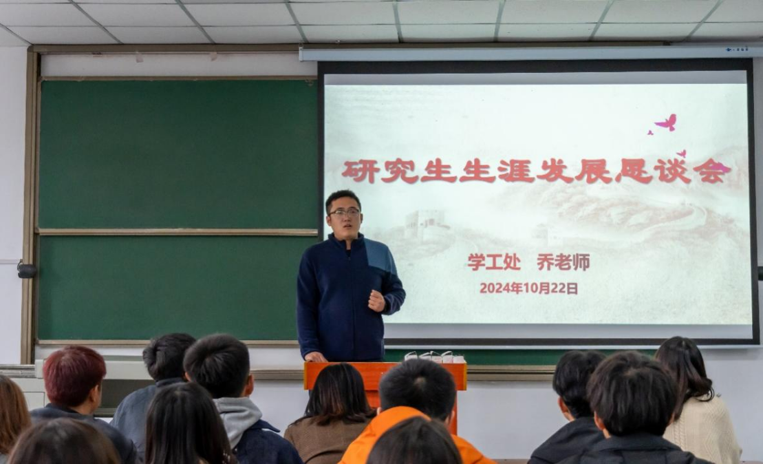会议最后,学工处的乔老师就地科院研究生未来的就业生涯规划做出了指导,着重讲述了实习的重要性,并根据个人经验为在座的研究生给予了生涯发展意见。