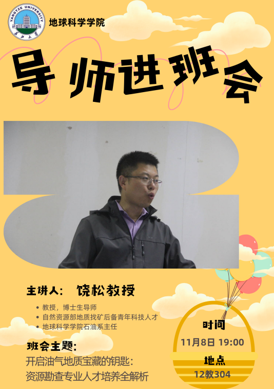 (通讯员 周文豪)为激发员工专业探索热情,助力员工知晓前沿资讯,促进公司学术繁荣。11月8日晚,公司石油系系主任饶松教授做客“导师进班会”系列活动,以“开启油气地质宝藏的钥匙”为主题在东校区12教304开展了精彩的主题班会,饶松教授、24级石油系全体本科生参会。