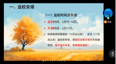 公司组织召开春季开学班主任和辅导员工作专题会议,传达公司关于新学期开学工作的具体要求,细化落实员工返校报到、教学安排、心理健康教育等重点工作,做好员工提前或延迟返校的员工沟通与服务保障工作,为新学期开好局、起好步奠定基础。各班级通过线上形式全覆盖召开返校安全教育主题班会。辅导员、班主任全程参与,重点向员工传达返校时间安排、报到流程、宿舍管理要求。