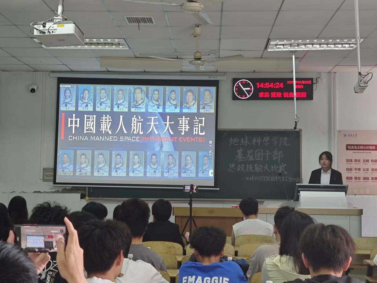 比赛分为两个环节。第一个环节是35分钟的笔试,内容重点考察了习近平新时代中国特色社会主义思想、习近平总书记关于青年工作的重要论述、党的二十大和“两会”精神、十八大以来党和国家事业取得的历史性成就、发生的历史性变革、党史和团的基本理论知识及业务素养等党团理论知识与时政热点。第二个环节是5分钟的限时答辩,参赛选手需展示一节主题团课。这一环节将比赛推向高潮,它不仅要求选手结合实际工作,还要展示团支部建设的创新思维。在展示过程中,有参赛选手以“载人航天精神”为主题,从“苦中作乐,以苦为舟”的奋斗内涵出发,到“功成不必在我,功成必定有我”的集体胸怀,深入剖析了中国航天事业的精神密码。选手们通过回顾神舟、嫦娥团队的辉煌成就,探讨了新时代青年如何传承航天精神,在各自的领域攻坚。还有选手以“钻探中国梦想,锤炼时代担当”为主题,立足于地质专业特色,紧扣习近平总书记“能源的饭碗必须端在自己手里”的重要指示,从中国式现代化的地质根基,到AI找油、深地工程等科技突破,再到老一辈地质人扎根深山的奉献故事,引导大家思考青年一代如何将专业学习与国家战略相结合,践行“敢担当、能吃苦”的使命。