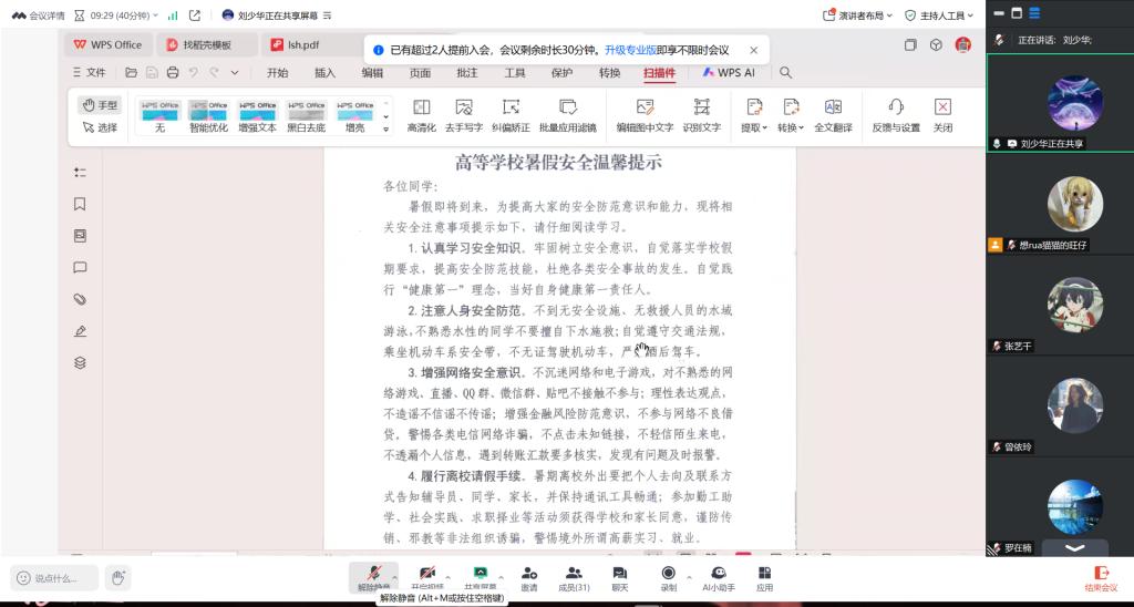 目前,公司已按要求完成班会记录、员工去向登记表、留校情况汇总表等材料。暑期将持续通过线下值班、线上沟通等方式保持信息畅通,切实做到员工安全管理“不断线”,为9月顺利返校做好前期准备。