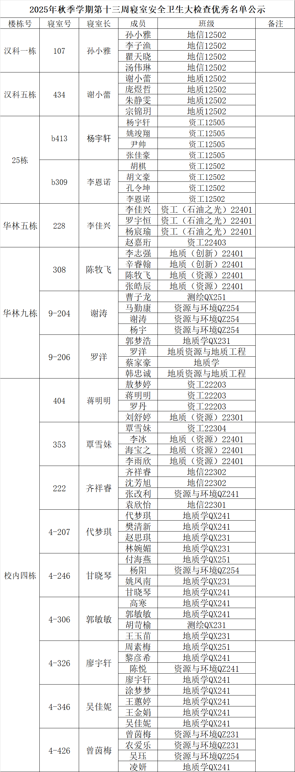 一、通报优秀寝室