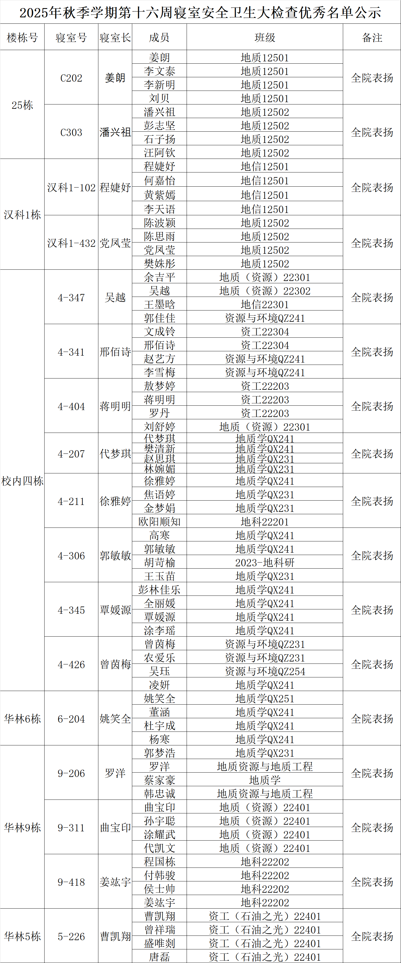 一、通报优秀寝室