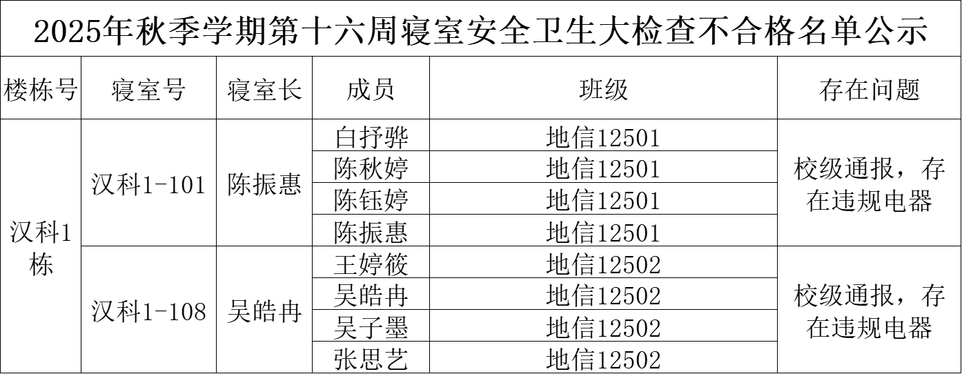 二、通报不合格寝室